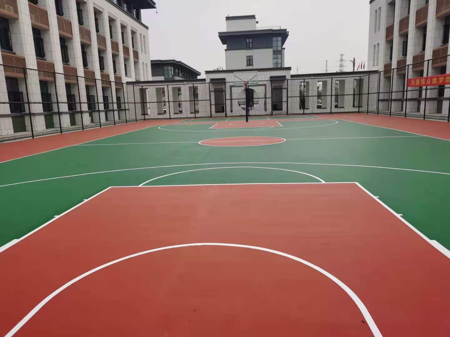 新天地漆業(yè)工程地下車(chē)庫(kù)籃球場(chǎng)彩色路面工程案例